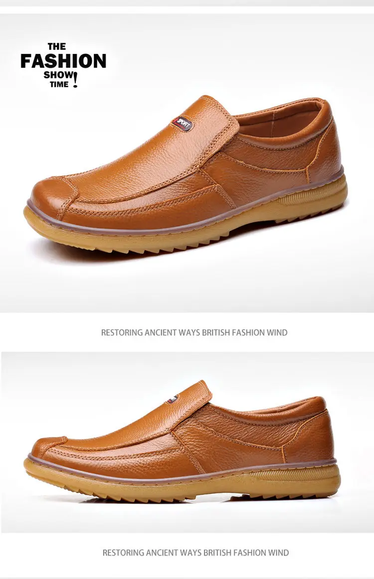 Men leather shoes spring men business casual genuine leather shoes leather beef tendon sole male loafers