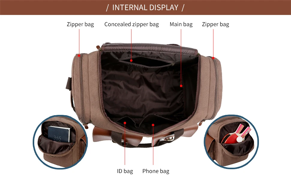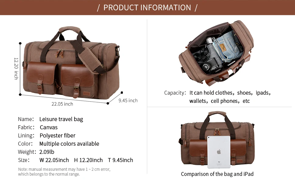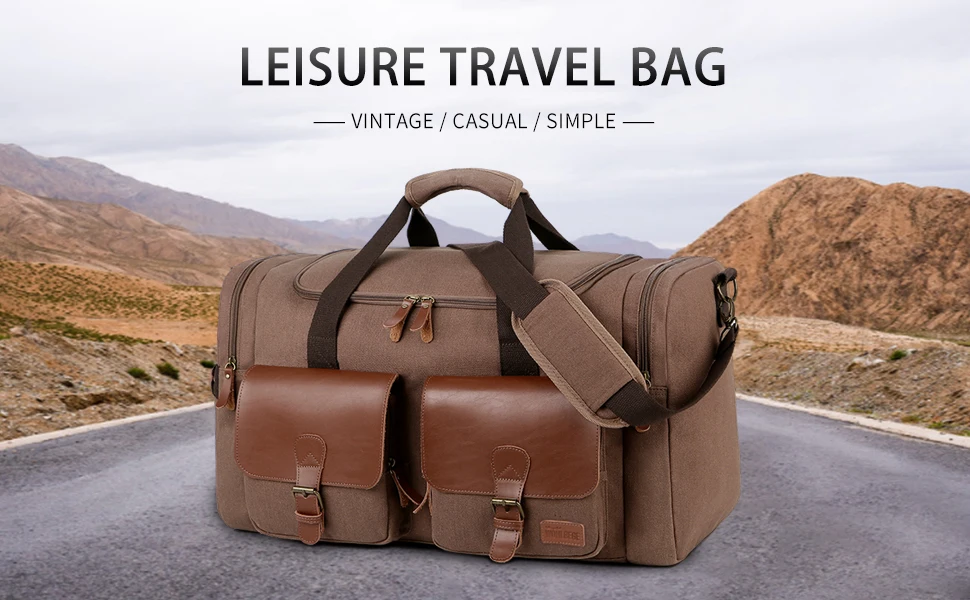Retro Canvas Travel Duffle Bag Men Travel Bags Hand Luggage Bag Leather Shoulder Diagonal Bag Weekend Bags