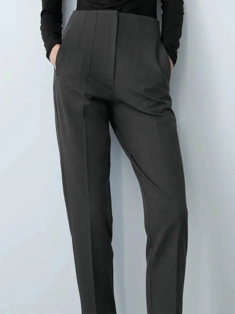 Women Spring Trousers Suits High Waisted Pant Fashion Office Lady Beige Elegant Casual Famale Stright Pants